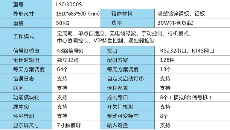 LSD3000S型交通信號(hào)控制機(jī)采用先進(jìn),穩(wěn)定、可靠的模塊化多處理器、多總線系統(tǒng)結(jié)構(gòu)。采用高速ARM控制器及大規(guī)模集成電路,實(shí)時(shí)運(yùn)算道路交通信息,如道路交通狀態(tài)、道路車流量。全部信號(hào)機(jī)可以組成城城網(wǎng),完成于指揮中心信息交換。根據(jù)城市交通模型進(jìn)行云計(jì)算,計(jì)算數(shù)據(jù)精準(zhǔn)。帶有一塊7寸液晶觸摸顯示屏,和一個(gè)數(shù)字鍵盤。